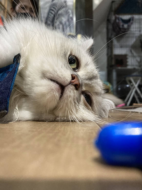 また、世の中には沢山の野良猫、捨て猫、保護猫、お家のない子達が沢山いる事、そして猫達の正しい知識をしっかり知って頂き、そんな子達をお迎えして頂ける【譲渡会】【動物愛護センターからの引き取り】等々がある事をお伝えし1にゃんでも暖かいご家族の元に行け幸せになれる様に、このカフェを開店しました。